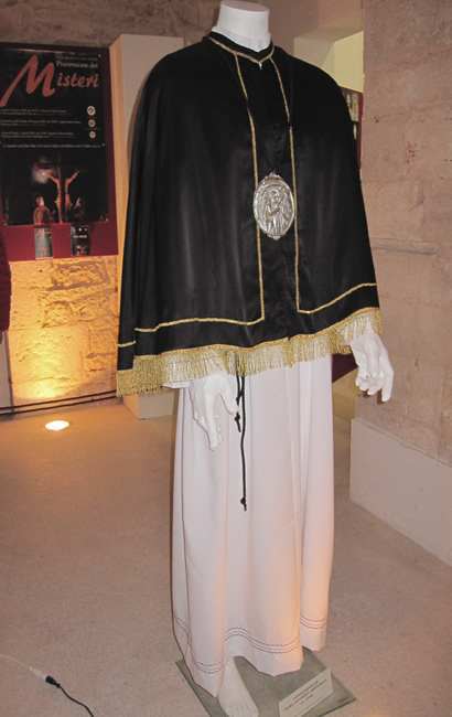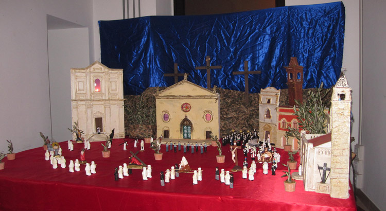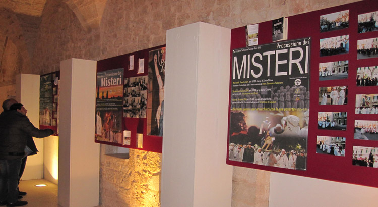 Così in occasione del ventennale il comitato, in collaborazione con l’Aci – Maria Ss della Natività, e i gruppi scout Agesci Noci 1 e 2, ha allestito all’interno del Chiostro delle Clarisse una mostra fatta di cimeli e iconografie che ripercorrono il percorso vissuto sino ad oggi. Nulla di scontato. Con l’ausilio fattivo dello storico locale Pasquale Gentile, la mostra è curata nei minimi dettagli, con un plastico che riproduce fedelmente la processione dei misteri, tutte le pubblicazioni relative ai diversi anni organizzativi ed addirittura manichini con gli abiti delle confraternite che aderiscono (o hanno aderito) alla processione. Vi sono anche le ultime due statue di “Gesù risorto” e “Gesù alla colonna”, risalenti al 1700, ritrovate fortunosamente, ma anche in pessimo stato di conservazione, in un ripostiglio murato nella sacrestia della chiesa di sant’Agostino, dacché il comitato si ritrova con due statue del “Gesù alla colonna”: «le custodiamo entrambe gelosamente» commenta Angiulli.