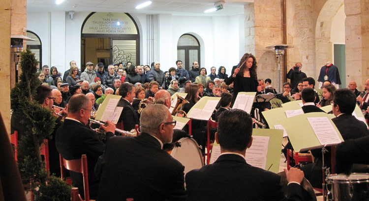 Nella serata inaugurale la musica ha supportato egregiamente l’apertura al pubblico della mostra. Alla vigilia della processione dei misteri (avvenuta domenica 20 marzo), la banda cittadina “S. Cecilia – G. Sgobba” ha presentato il concerto della passione attraverso musiche di Lacerenza, Caccini, Mozart, Mascagni, Donizzetti e Rizzola, con un fil rouge che accomuna i diversi brani (anche se tratti da opere completamente diverse)che confluiscono nella passione e nel dolore. Sul palco si sono alternati Giacomo Lasaracina e Paola Sportelli, rispettivamente responsabile comunicazione e direttore artistico, che alternativamente hanno condotto la banda, piena di ragazzi giovanissimi, sulla strada della musica.