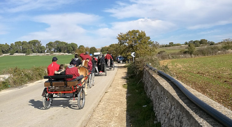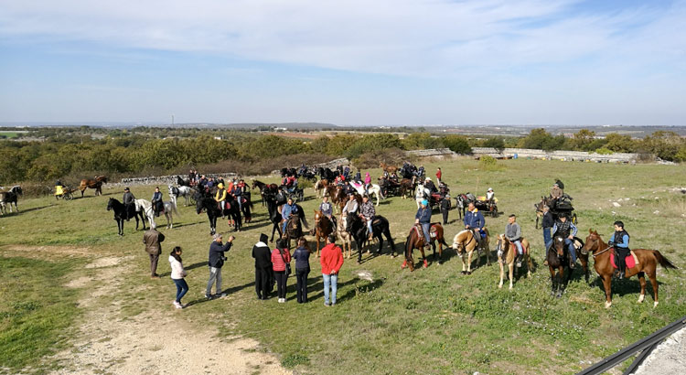 NOCI – Il fascino delle masserie e le bellezze naturali della campagna murgiana hanno fatto da sfondo alla prima Passeggiata sull’Ippovia della Murgia. Organizzata dall’Associazione Regionale del Cavallo Murgese in collaborazione con la scuderia Spirito Libero, circa 80 persone hanno percorso una decina di chilometri immersi nella natura delle campagne nocesi dalla zona di Lago Milecchia toccando diverse masserie della zona tra la provinciale per Gioia del Colle e quella per Castellaneta. Prima però la benedizione da parte dei benedettini della Madonna della Scala.