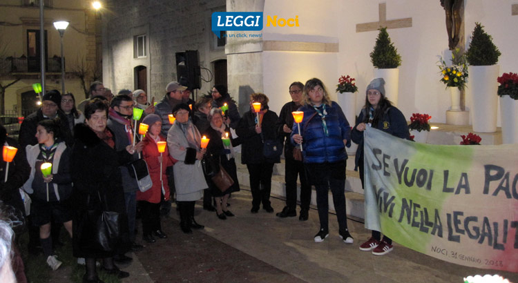 Tra i tanti partecipanti, la testimonianza eccellente di don Aniello Manganiello, prete anticamorra che ha retto la chiesa di Santa Maria della Provvidenza nel quartiere Scampia di Napoli sino al 2010. Don Aniello ha portato alla conoscenza della comunità nocese partecipante alla fiaccolata per la legalità di come «per credere nella pace bisogna prepararsi alla guerra, e la guerra è quella contro l’illegalità diffusa, fatta di gesti che emergono dal quotidiano come saltare la fila, parcheggiare l’auto in posti vietati, sopraffare l’altro attraverso l’uso indiscriminato di escamotage, o evadendo le tasse». Non è mancata una nota politica riferita soprattutto ai giovani «che devono riprendersi ciò che gli spetta di diritto, non lasciarsi prendere dallo sconforto, ma prendere in mano la propria vita per rendere il mondo un posto migliore, sconfiggendo il male che si annida nella corruzione e nella disonestà».