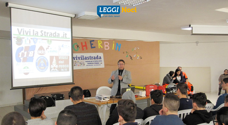 NOCI – Buone norme comportamentali, il rispetto delle regole, il rispetto per i soccorritori. Non è facile illustrare ad un parterre di giovanissimi le regole e i modi di vivere la strada. Ci ha provato l’associazione no profit Vivilastarada.it che mercoledì mattina, attraverso il suo presidente Tonio Coladonato, ha tenuto impegnati circa 180 studenti dell’istituto “Agostino Agherbino” di Noci per diffondere la cultura della sicurezza stradale e di come avviene un soccorso a persona.