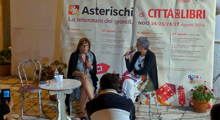 NOCI – Ritorna nella piccola piazza di Largo Torre, nel centro storico di Noci, la terza edizione di “Asterischi”, la letteratura dedicata ai grandi, spin off del Family Festival Cittadeilibri, che vedrà alternarsi 18 autori, dal 24 al 27 agosto. Nel primo dei quattro appuntamenti si è parlato di famiglia e genitori, soprattutto nella figura femminile delle madri, con quattro autori quali il giornalista Gianni Spinelli con Tutta colpa di Eva (non presente per un imprevisto), la docente Antonia Chiara Scardicchio con Madri. Voglio vederti danzare, l’architetto e disegnatore Matteo Bussola con Notti in bianco, baci a colazione e lo scrittore Francesco Abate con Mia madre e altre catastrofi.
