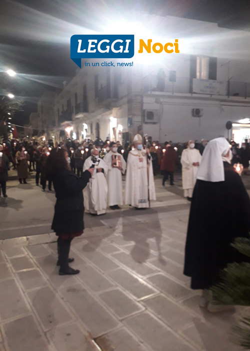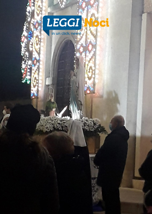 NOCI – Ieri, 11 febbraio, in occasione della Festa della Beata Maria Vergine di Lourdes, a Noci, presso la Parrocchia SS. Nome di Gesù, è stato recitato il rosario alle ore 18.00 e alle ore 18.30 si è celebrata la Santa Messa, presieduta da Sua Ecc.za Mons. Giuseppe Favale, vescovo di Conversano-Monopoli. Tanti i presenti e molti collegati attraverso la rete, con una diretta sui canali social. A conclusione della Santa Messa, sul sagrato della parrocchia, il Vescovo ha impartito la Benedizione papale con annessa indulgenza plenaria.