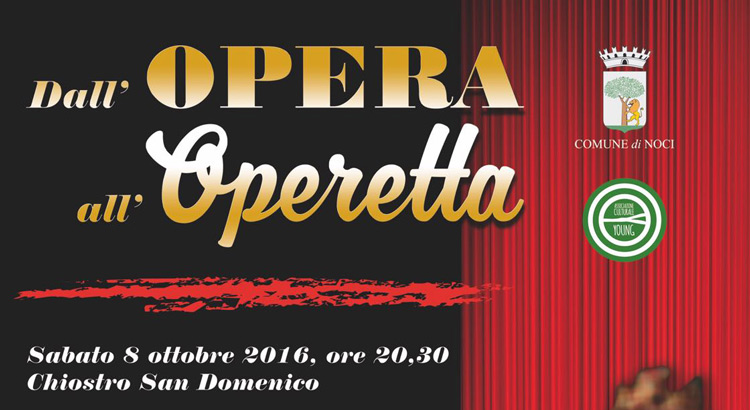 Chiostro San Domenico via Repubblica, Noci, ItaliaNOCI - È in programma per sabato 8 ottobre al Chiostro di San Domenico (via Repubblica), con inizio alle 20.30, “Dall’opera all’operetta”, manifestazione musicale organizzata dall’associazione culturale Young con il patrocinio del Comune di Noci. Un viaggio su due generi teatrali musicali: dall'opera lirica, in cui l’azione scenica è accostata alla musica e al canto, […]
