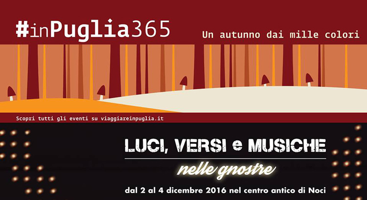 Largo Torre Largo Torre, Noci, ItaliaNOCI - Luci, Versi e Musica nelle Gnostre è una manifestazione organizzata dal Comune di Noci, con il sostegno della Regione Puglia – Assessorato all’Industria turistica e culturale, nell’ambito di “Inpuglia365”, primo step di destagionalizzazione del Piano strategico del turismo Puglia365. Il Comune di Noci, rispondendo all’Avviso di manifestazione d’interesse – Call all’azione “Inpuglia365” – […]