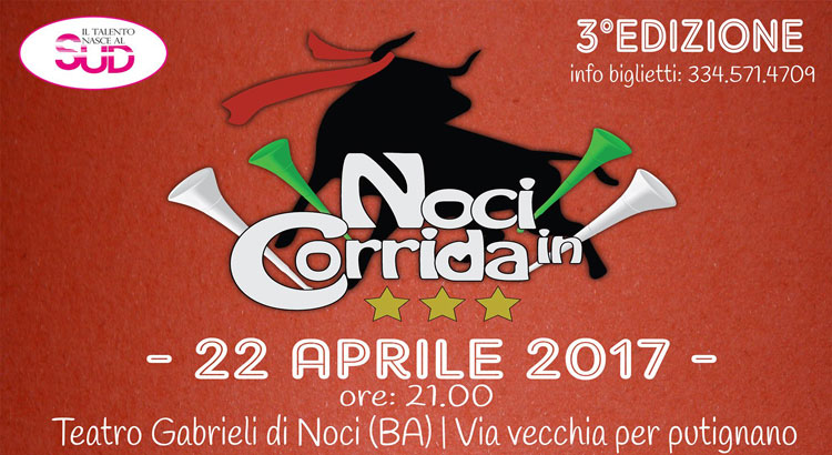 Teatro Gabrieli Noci, ItaliaNOCI - Sta per arrivare a compimento l'organizzazione della terza edizione di Noci in Corrida. Circa 20 i dilettanti che sul palco del Teatro Gabrieli daranno sfoggio del loro talento esponendosi alle volontà del pubblico. A condurre la serata sarà il celebre Pippo Franco, affiancato da Santino Talento. Per i premi invece l'organizzazione curata dall'associazione […]