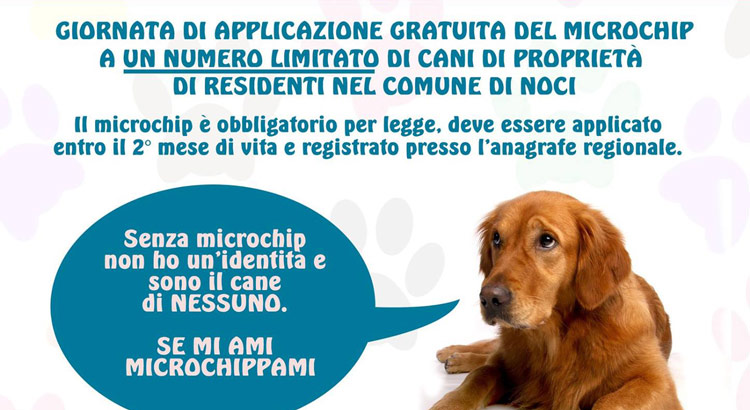 Ex Palazzo Municipale via Porta Putignano, Noci, Bari, ItaliaNOCI - Si svolgerà domenica 28 maggio dalle ore 9.30 alle 12.30 il microchip day promosso dall’associazione SOS Adozioni4zampe ONLUS. La manifestazione si terrà all’interno dei locali dell’ex palazzo municipale di via Porta Putignano. Per usufruire dell'iniziativa, sarà obbligatorio presentarsi allo stand con Carta d'Identità valida che attesti la residenza nel comune di Noci e […]