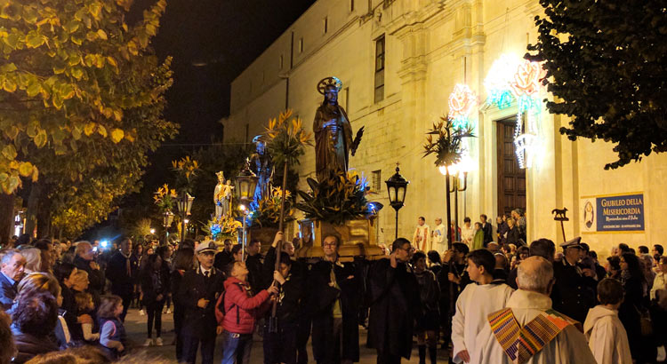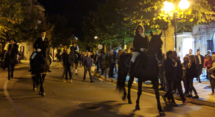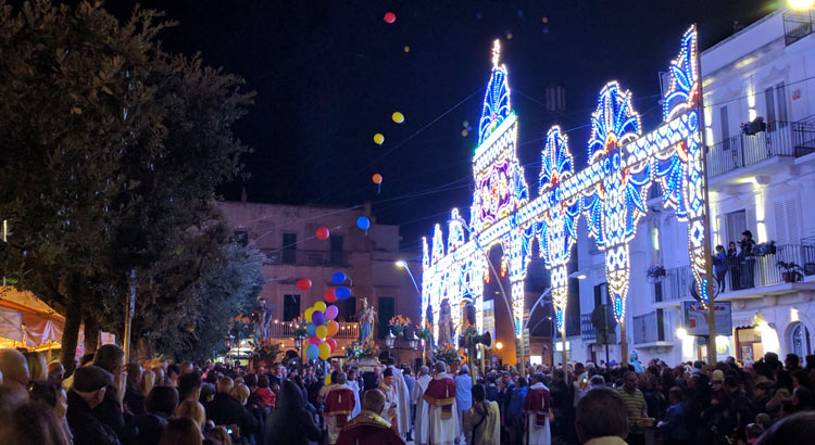 Inoltre, molto seguite sono state le due processioni con le quali le sacre immagini sono state condotte lungo le vie del paese, accompagnate dalla banda e dalle autorità civili, militari e religiose. La processione lungo le vie del borgo antico ha avuto luogo nella mattinata di domenica, invece la tanto attesa processione lungo l’estramurale, si è svolta ieri sera, preceduta dagli sbandieratori e da fantini a cavallo che hanno catturato l’attenzione e l’entusiasmo di tutti i presenti, grandi e bambini. Al giungere della processione nella piazza principale, in omaggio dei santi sono stati lanciati in cielo palloncini colorati, palloni aerostatici e fuochi d’artificio.
