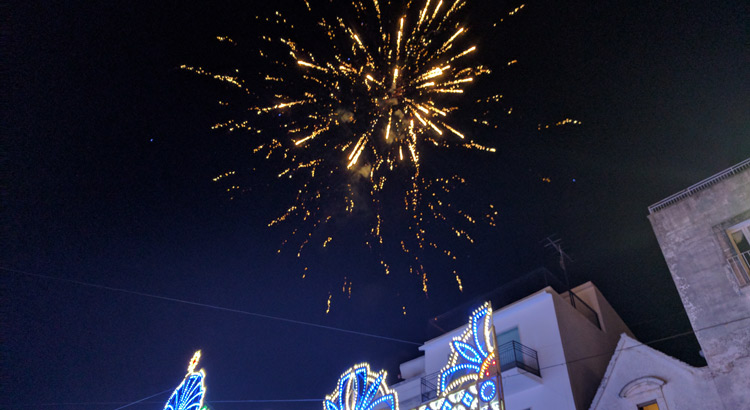 A conclusione della festa, non poteva non esserci il grande spettacolo pirotecnico che, rimandato di un giorno a causa della pioggia, a seguito della processione di ieri sera ha illuminato e colorato il cielo sovrastante il nostro paese.