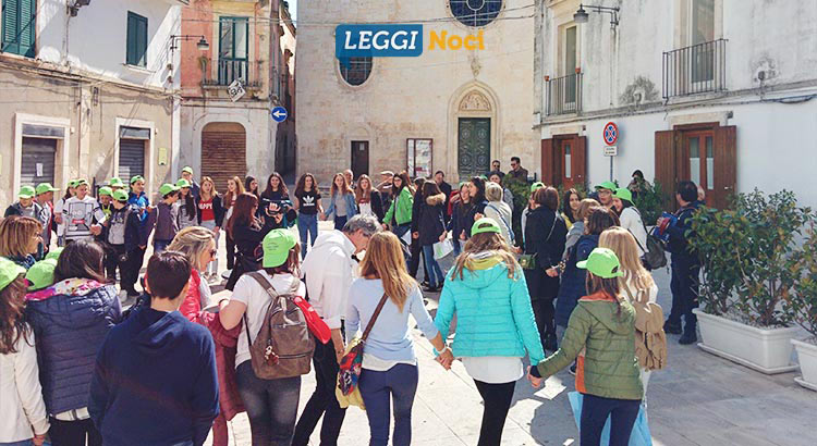 Il 30 marzo gli alunni sono stati ospiti del comune di Alberobello, dove il sindaco ha dato gratuità per ingresso e sosta in tutti i siti del paese, sia pubblici che privati. Il 31 è la volta dell’accoglienza da parte del nostro comune, dove, ospiti della scuola media, i ragazzi marchigiani hanno incontrato gli alunni delle classi seconde e terze, i quali li hanno accolti e accompagnati in visita al Centro Storico. Qui, le mini-guide dell’istituto, insieme all’architetto Piero Intini, hanno illustrato gli angoli tipici del nostro borgo antico, con i palazzi storici e le famose gnostre, oltre a visitare la Chiesa Madre e la Chiesa di Santa Chiara. Inoltre, per movimentare la visita, alcuni componenti del gruppo folkloristico hanno suonato e ballato tarantelle e quadriglie, tipiche della nostra regione. Dopo essere stati ospiti del nostro comune in un agriturismo locale, i ragazzi sono partiti alla volta della vicina Castellana Grotte, dove il sindaco ha consentito l’ingresso gratuito al percorso che porta alla Grotta Bianca. Nell’ultimo giorno, i ragazzi sono partiti alla volta di Matera, per poi far rientro a casa.