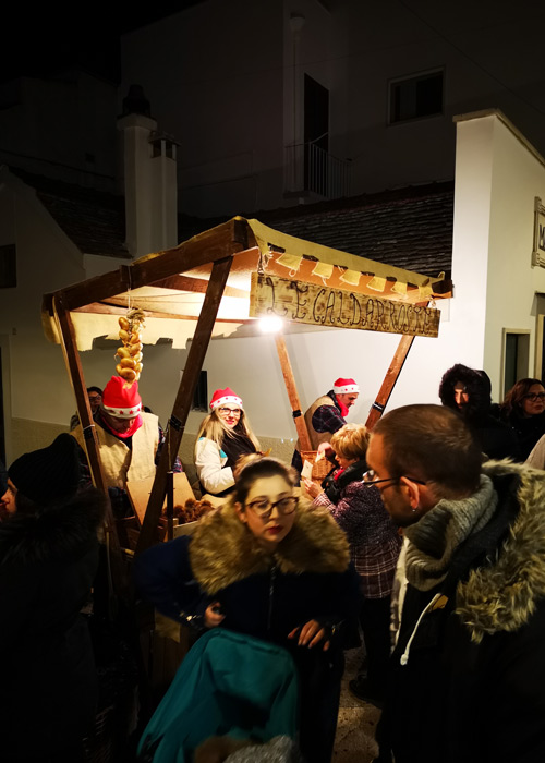 Per l’occasione le vie del centro storico sono state allestite con diversi stand che offrivano ai partecipanti la possibilità di degustare numerose specialità gastronomiche del nostro territorio, accompagnate da un’accurata selezione di vini offerta dall’AIS Puglia, tra cui tre aziende locali: A mano Wine, Barsento spa e Vigna Flora. Le attività locali che hanno preso parte alla manifestazione sono state: Ristorante Antica Locanda, Osteria Montegrappa, Caseificio Ignalat Srl, Antica Salumeria Gigante, Bar Campanile, Ristorante Piazza Antica, Dulciar, Attenti al Luppolo, Pizzeria San Bernardo, Bar Piper, Il Mago dell’arrosto, Vivai degli Ulivi dell’Orso, Tarallificio Pancaldo, Pane Salame e Fantasia, e un piccolo banchetto di caldarroste.