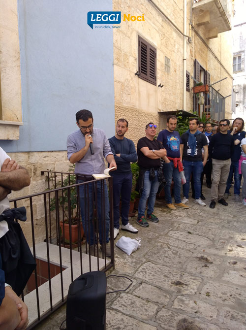 A parlare è la guida turistica Antonio Natile che prosegue: «la nostra passeggiata storica parte da un luogo molto sentito e scarsamente valorizzato come la stazione ferroviaria dove la sua scalinata fu conclusa nel 1905». Da qui la passeggiata si è snodata per tappe attraversando il centro cittadino, passando dalla targa storica di Cesare Battisti e da Largo Sott.te Rotolo, sino alla scuola Positano, per concludersi in piazza Garibaldi. Dai luoghi alle persone: non solo mestieri, usi e costumi di allora, ma anche personaggi come Francesco Paolo Cazzolla (Ciccepavele u Capòne) e Francesco Paolo Fusillo (Ciccepàvele u Russ) che hanno segnato il ‘900 nocese. A conclusione del tour la festa si è spostata a Masseria Monaci Nuova.