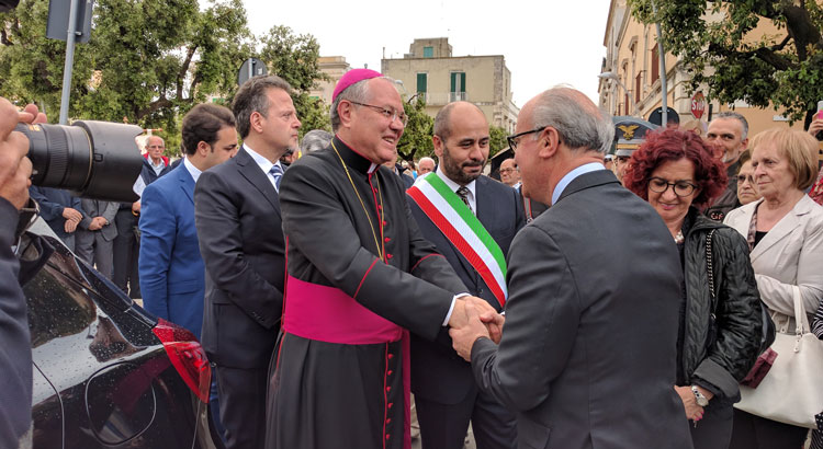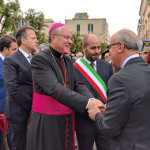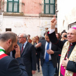 A catturare per primo l’attenzione dei presenti è stato il sindaco Domenico Nisi, il quale ha letto una profonda lettera scritta a nome di tutta la comunità nocese, come omaggio di benvenuto al nuovo vescovo. «Noci è una cittadina come le altre, – scrive il primo cittadino – piccola e tranquilla la si potrebbe definire, ma carica delle molte contraddizioni della nostra epoca, con un tessuto sociale che porta tutti i segni della crisi, anzi delle crisi di questo periodo, quella economica e del lavoro, quella del senso civico e delle istituzioni. Consapevole del carattere di laicità del ruolo che rivesto, sento quanto questa comunità abbia bisogno di riscoprire la sacralità di molti aspetti della dimensione collettiva dell’esistenza a partire dalla sacralità dell’incontro con l’altro e dalla cura della spiritualità per combattere l’individualismo», questo è il messaggio che Domenico Nisi ha voluto lasciare a monsignor Favale, il quale con il suo saluto alla comunità nocese ha incrementato la fiducia nei fedeli e la vicinanza nei confronti del Signore. «Dobbiamo camminare insieme perché così si costruisce il futuro, essendo uniti pur nella diversità che non va eliminata. Io nel mio piccolo, come padre di questa comunità cercherò di fare del mio meglio per testimoniare Gesù Cristo. Noci con il mio paese natio, Palagiano, ha in comune il santo patrono San Rocco e voglio affidare a lui la comunità nocese. Sarà lui a richiamarci all’essenziale, ossia all’amore e alla carità. Per cui eccomi qua, in semplicità, accoglietemi come un fratello, come un padre e come un amico che viene a stare in mezzo a voi, sostenetemi con il vostro affetto e la vostra preghiera», queste sono state le parole che hanno raggiunto i cuori di tutti i presenti, autorità e forze dell’ordine comprese.