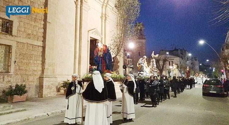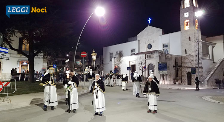 NOCI – Come ormai da tradizione prima delle celebrazioni della Pasqua, si è svolta nel nostro paese la Processione dei Misteri. Quest’anno la pioggia ha cambiato la consuetudine che vedeva la processione il giorno della Domenica delle Palme, spostandola in piena Settimana Santa. Mercoledì 28 marzo, lungo le vie principali del nostro centro cittadino, hanno sfilato le 12 statue raffiguranti la Passione e crocifissione di Cristo.