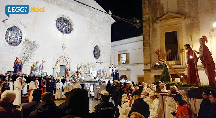 La processione è partita dalla Chiesa di Santa Chiara, dove le statue sono custodite durante l’anno, tranne che per due sculture, Gesù morto e l’Addolorata, le quali sono partite dalla Chiesa Madre. Il corteo ha ripercorso le 14 stazioni della via Crucis, toccando le tre principali parrocchie nocesi.