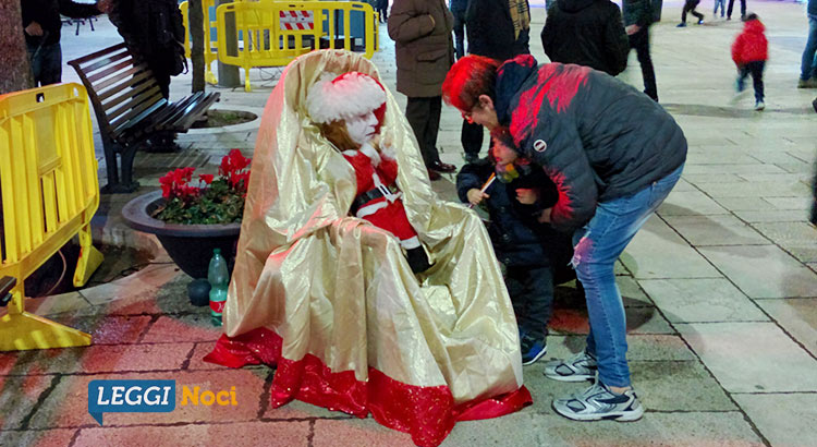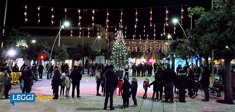 Appena tramontato il sole, si è dato il via ai festeggiamenti. Gli alberi di via Calvario hanno perso i loro rami, i quali sono stati sostituiti dalle classiche luci natalizie come a formarne una nuova chioma. Anche l’immancabile albero del Calvario è stato addobbato, ritornando alle classiche luci bianche che da sempre ci hanno accompagnato, dopo il tanto discutere delle “rosse” luminarie dello scorso anno. Piazza Garibaldi è stata abbellita con un grande ed illuminato abete, posto sotto a un “soffitto di luci cadenti”. Anche la Torre Civica ha preso colore dopo il suo spegnimento causato dal fulmine del gennaio di quasi quattro anni fa. Infatti, cupola, quadrante e una delle due finestre risultano illuminati da luci colorate. Inoltre intorno a tutto l’estramurale la filodiffusione diffonde musiche a tema natalizio.