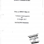 Il denunciante ing. Domenico Satalino non apparirebbe, a leggere le carte, coerente con quanto denunciato e quanto emergerebbe dalle indagini condotte. A seguito della denuncia presentata presso la locale stazione dei Carabinieri, il Satalino veniva successivamente interrogato dai Pubblici Ministeri istruttori. Nel “Verbale di Interrogatorio del 23 Giugno 2017” di cui si pubblicano stralci (vedasi foto allegata), il Satalino veniva sottoposto ad alcune domande: