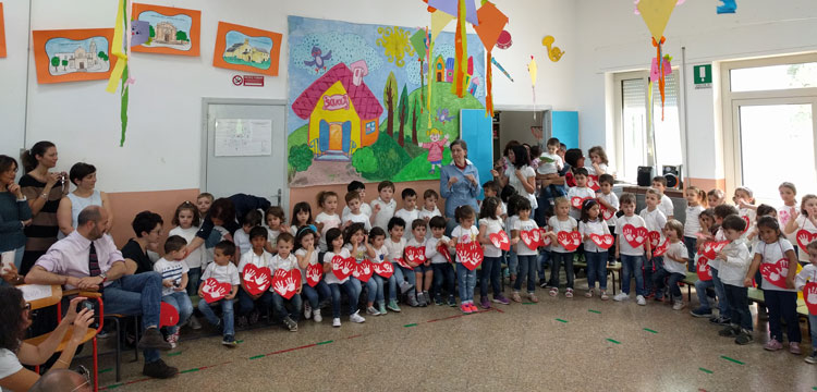 Al termine delle esibizioni, i piccoli protagonisti di tutti i plessi hanno eseguito il canto “Diritto al futuro”, brano molto significativo perché come spiegato dall’ins. Dora Villino «I bambini rappresentano il nostro futuro e la ragione più profonda per conservare e migliorare le nostre radici. Affidiamo a loro il seme della speranza, affinché con l’impegno comune, nel rispetto reciproco e nell’amore per la vita, si possa radicare alla ricchezza delle proprie origini per giungere ad un futuro universalmente migliore».