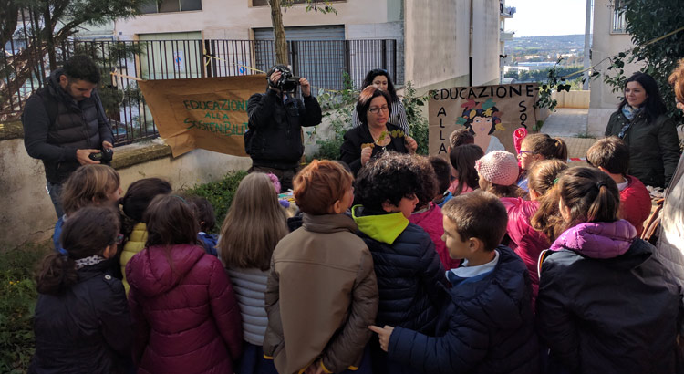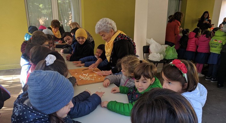 “Giocando a Bacco” tutti gli alunni hanno potuto vivere un’esperienza all’insegna della musica, dell’arte e del buon cibo. Lungo il percorso, ogni bambino ha avuto l’opportunità di degustare le caldarroste offerte dall’azienda agricola Lama Chiara, salumi e formaggi di aziende locali insieme a succhi di frutta offerti dall’AIS (Associazione Italiana Somelier), e i cioccolatini della Dulciar associati alla spiegazione della realizzazione del cioccolato, dalla raccolta del cacao fino alla produzione locale. Inoltre, gli alunni hanno avuto l’occasione di partecipare a balli popolari diretti da Felice Gioia, Checca Tinella e Taranta Fil, assistere a laboratori manuali grazie all’associazione MurgiAmbiente, che con l’utilizzo di elementi naturali tipici dell’autunno, come foglie e uva, ha aiutato i bambini a realizzare bellissime ghirlande per abbellire la proprie aule, e alle signore del Centro Anziani, che hanno allestito un laboratorio dove apprendere l’arte di saper preparare a mano le orecchiette. Infine, i bambini hanno ricevuto palloncini colorati a forma di animaletti e disegnini sui volti grazie al talento di Marianna Panna, Cristina Turi, Tania Calicchio e Nancy Locorotondo.