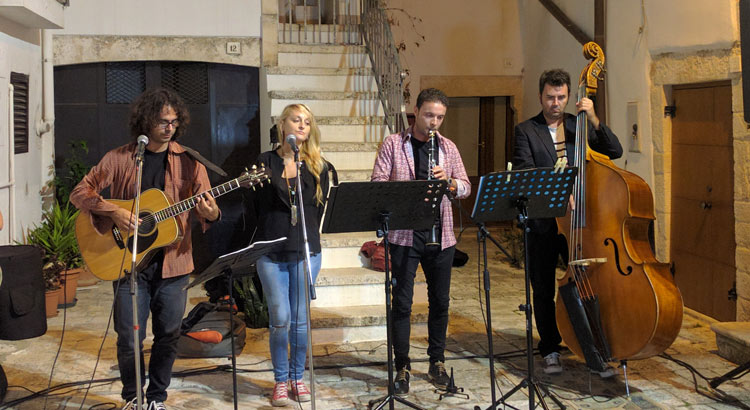 Nel corso della serata, l’associazione “Nino Rota” di Castellana Grotte, composta dal chitarrista Giuseppe Camicia, dalla cantante Linda de Orsi e dal contrabbassista Verio Colella, ha allietato il pubblico eseguendo brani tratti da vari generi musicali. Inoltre, la voce di Elisabetta Lenoci ha impreziosito la lettura di alcuni passi dei libri presentati.