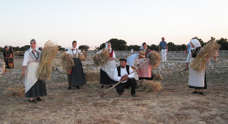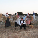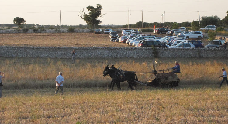 Rotte le righe del cerimoniale istituzionale, via libera alla rievocazione storica con gli amici contadini alle prese col grano e gli attori della Compagnia Stabile di Alberobello a riprendere i lavori artigianali e, successivamente, a danzare sulle note della musica popolare reinterpretando il lavoro dei campi. Nella giornata d’apertura un curioso siparietto ha investito i visitatori. Due novelli sposi irrompono sull’aia della Masseria Vecchia Mastro Marco, sede della manifestazione, ed inscenano il loro book fotografico. Contenti gli sposi, divertiti gli astanti. In serata le note dei Sciamaballà ha allietato coloro i quali hanno inteso conoscere o riscoprire la tradizione contadina tipica della murgia. A garantire l’ordine invece i volontari dell’Associazione Nazionale Carabinieri della sezione di Noci e i Ranger di Putignano.