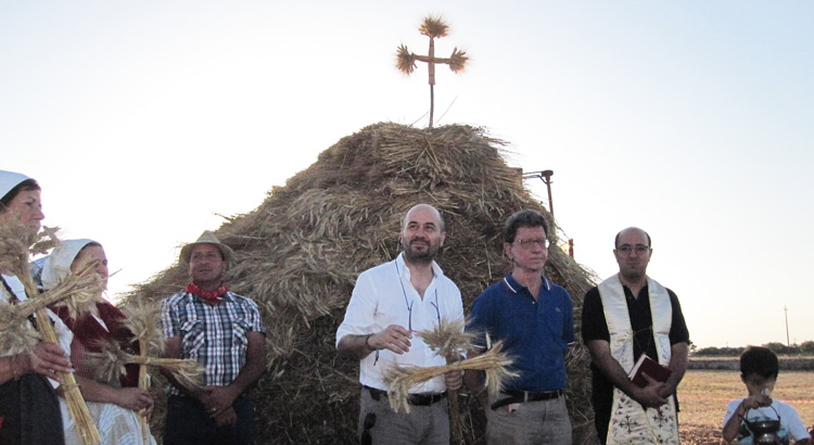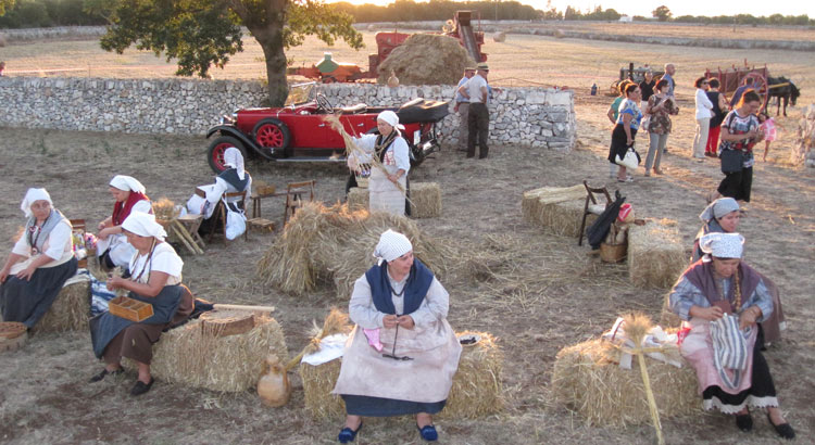 NOCI – La terra baciata dal sole, il bianco della calce a coprire una struttura rinnovata da poco, musiche popolari. La 6 edizione di Covoni e Tradizioni, per chi c’è stato, è sembrato un tuffo nel passato, con i braccianti agricoli vestiti come un tempo e le massaie a ricamare. È la vita della masseria e della cultura contadina che sono l’essenza del territorio murgiano. «Diamo spazio alla terra – dice don Vanni D’Onghia durante la benedizione delle spighe di grano – è un dono di Dio che va rispettato».