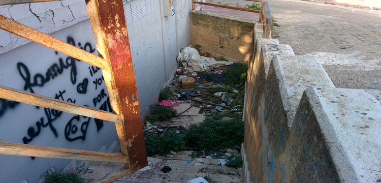 NOCI – Sicurezza, è una parola che ricorrente si pronuncia, si ascolta, ci si discute su, ma quasi mai si lotta per raggiungerla. Ed è questo l’ultimo caso di insicurezza emerso nella cittadina nocese in questi giorni. A denunciarlo è M.R., un ragazzo nocese che ha raccontato attraverso i social network lo stato di degrado in cui versa l’area di via Pio XII. A LeggiNoci racconta: «Da qualche mese, la mia famiglia, ha adottato un cane. Con la stagione invernale si è presentata la necessità di trovare un luogo dove farlo correre in libertà. Lo spazio che ci è sembrato più idoneo, perché recintato, è il “campo rosa”. Qui sono cominciate le difficoltà perché rifiuti di ogni genere sono apparsi lungo le scalinate. In ultimo, la causa che ha fatto precipitare una situazione già critica è stata aver trovato cassette di mozzarelle deperite e igienicamente critiche e chili di pane ammuffito abbandonati impropriamente a valle del suddetto campo. Conclusione: il nostro cane non ha mai avuto l’opportunità di poter sgambettare liberamente nel campo rosa».